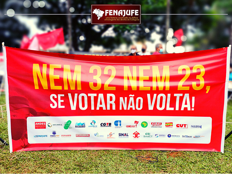 O ato de hoje encerrou a décima semana consecutiva de mobilização permanente em Brasília contra a PEC 32 e, agora, contra a PEC 23 também. E, na próxima semana, a mobilização continua na capital federal. Vale lembrar que em forte aceno ao mercado financeiro e a empresários, durante evento promovido pelo banco Itaú, Paulo Guedes disse que o governo vai tentar aprovar a PEC 32 até o fim do ano. Além disso, Guedes afirmou que o objetivo também é aprovar a PEC dos Precatórios (PEC 23/21) no Senado.