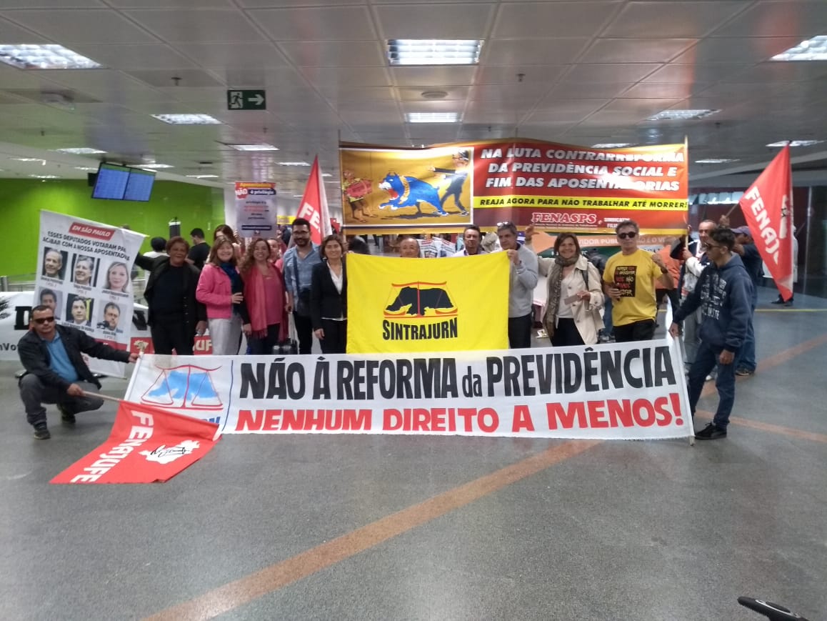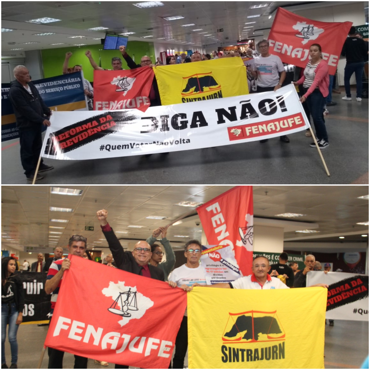 A Fenajufe volta ao Aeroporto Internacional de Brasília na tarde desta segunda-feira (5) e na manhã desta terça (6), juntamente com as entidades que compõem o Fórum dos Servidores Públicos Federais (Fonasafe), o Sindjus-DF e demais centrais sindicais com o objetivo de pressionar os parlamentares e defender a Previdência Social.