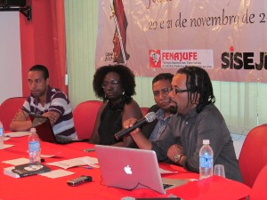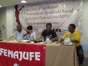 O segundo dia do seminário começou com um painel sobre combate ao racismo no Brasil. Alexandre Marques, assessor parlamentar de vários sindicatos incluindo o Sisejufe, disse que o parlamento não tem 20% de negros. E que há apenas um deputado de matriz africana. Alexandre lamentou que o Estatuto da Igualdade Racial tenha ficado parado anos no Congresso (o PL nº 213 é de 2003 e só virou Lei 12.288 em 2010).