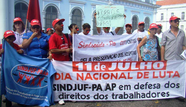 Sindjuf/PA-AP – Uma grande manifestação tomou conta da capital paraense, com a participação de diversas categorias do serviço público e da iniciativa privada. Durante a manhã, os trabalhadores se concentraram em frente à prefeitura para reivindicar melhorias na saúde, educação, transporte público e nas condições de trabalho de centenas de profissionais do município. Uma comissão formada por representantes das centrais sindicais se reuniu com o prefeito de Belém, Zenaldo Coutinho, e entregou uma carta solicitando redução da tarifa de ônibus, passe livre aos estudantes e bilhete único. Após a reunião os trabalhadores seguiram pela Av. Portugal, Castilhos França, Presidente Vargas, indo até o Centro Integrado de Governo (CIG), na Avenida Nazaré. Ao final do ato os manifestantes realizaram concentração em frente ao CIG, onde a comissão representativa das centrais sindicais foi recebida pelo Secretário Especial de Estado de Proteção e Desenvolvimento Social, Sérgio Leão, e entregou a pauta de reivindicações da categoria. O Secretário, assim como o Prefeito Zenaldo Coutinho, deu prazo de 15 dias para analisar o documento com as reivindicações dos trabalhadores. O Sindjuf/PA-AP também participou do Dia Nacional de Luta em defesa da pauta geral tirada pelas centrais e também da pauta específica da Fenaufe.