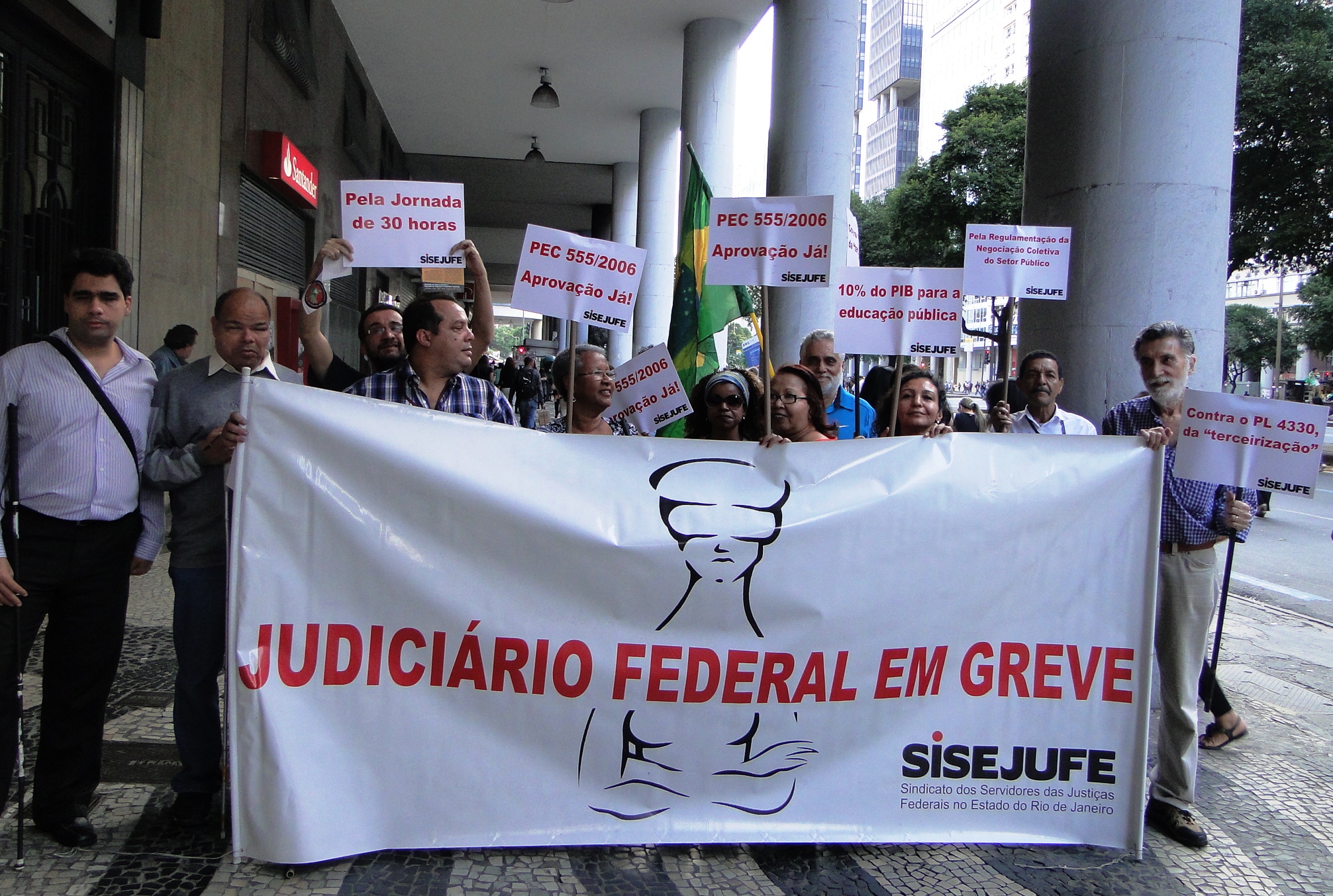 Sisejufe/RJ – Superlotando a avenida Rio Branco, no centro do Rio, trabalhadores e estudantes se dirigiam em passeata, após concentração na Praça da Candelária, com palavras de ordem por melhorias na saúde, na educação, no transporte público, na segurança, na moradia, pelo fim da corrupção, pelo fim do leilão do petróleo entre outros. O Sisejufe realizou em frente à Justiça Federal na Avenida Rio Branco um ato para mobilizar a categoria e os servidores uniram-se aos demais segmentos da classe trabalhadora no ato unificado, que contou com a participação de milhares de manifestantes de diversos segmentos da sociedade inclusive os aposentados do Sisejufe.