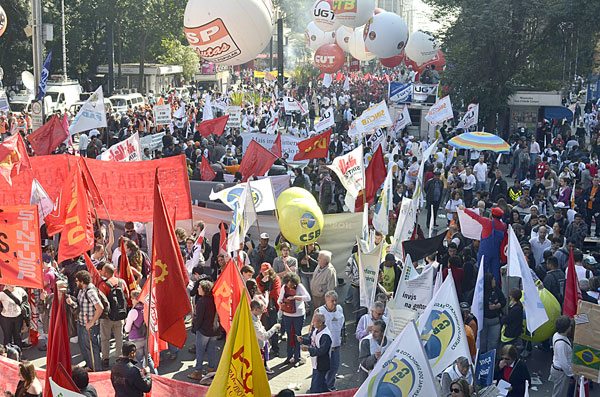 Sintrajud/SP – O clima na cidade de São Paulo era de feriado. Ruas vazias, quase nenhum trânsito, lojas e agências bancárias fechadas. Convocado pelas centrais sindicais, o Dia Nacional de Lutas não teve uma greve geral, mas foi muito significativo, pois marcou a primeira participação dos trabalhadores na onda de protestos que varreu o país em junho. Na Av. Paulista, onde aconteceu o ato das centrais sindicais, houve várias críticas ao governo Dilma Rousseff (PT) e a sua política econômica. Depois, os manifestantes seguiram em passeata pela Rua da Consolação até a Praça Roosevelt. Embora com críticas a características do ato, a maioria dos servidores do Judiciário Federal que esteve na manifestação afirmou que foi só começo. Eles também observaram outro elemento positivo das manifestações: a pauta conjunta que está sendo construída, que pode ser um elemento de pressão sobre o governo federal e sua política de arrocho.