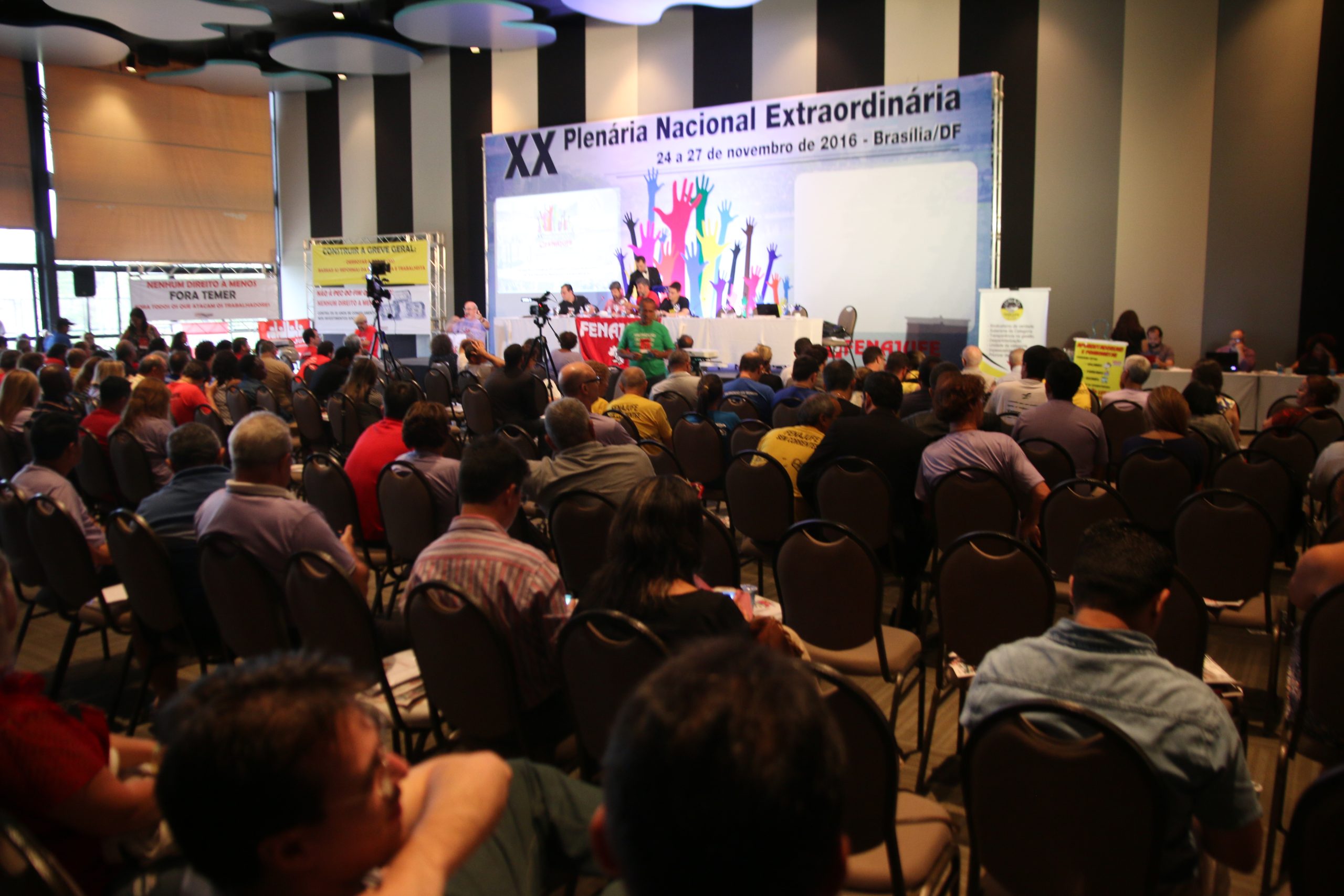 Os trabalhos da XX Plenária Nacional Extraordinária da Fenajufe neste sábado (26) foram abertos com o debate dos representantes das forças políticas que atuam no movimento sindical do Judiciário Federal e do MPU. A tônica central das falas dos representantes dos setes grupos presentes foi a organização da categoria para enfrentar os retrocessos da classe trabalhadora, frente às políticas impostas pelo governo de Michel Temer. Algumas análises divergentes sobre a conjuntura , no entanto, permearam as discussões.